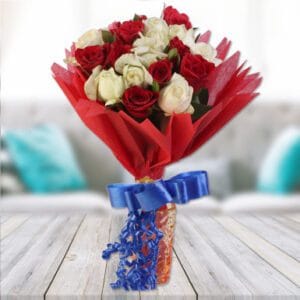 Scintillating Beauty A bouquet of Red and White Roses